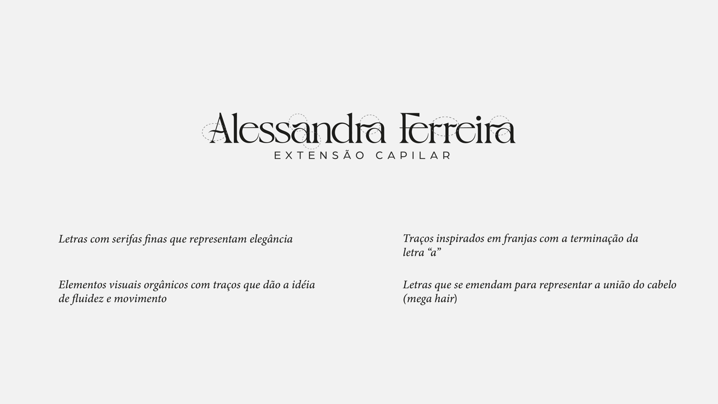 Nosso objetivo foi desenvolver uma identidade visual que valorize o trabalho da Alessandra e de todas as pessoas envolvidas no projeto do salão, além dos produtos que posteriormente virão fazer parte do catálogo da empresa.