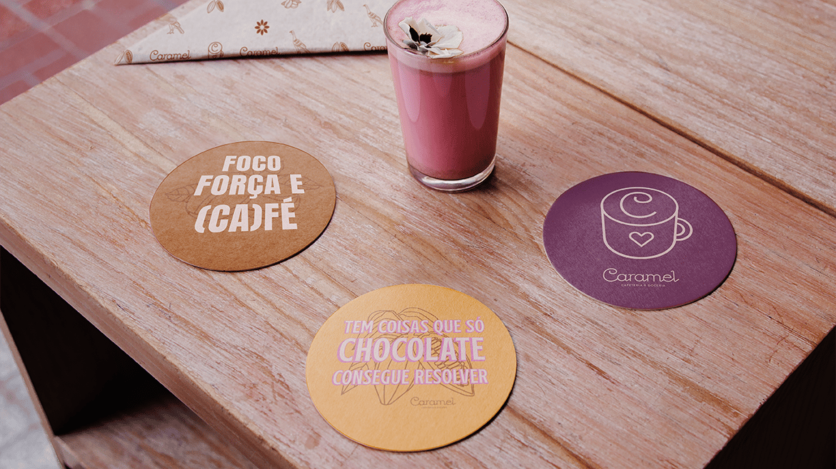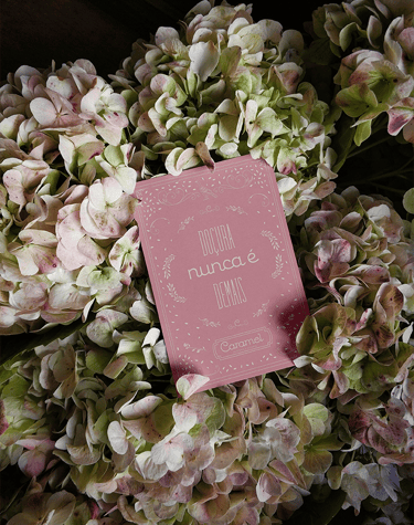 Criamos uma identidade que transmite leveza, que é suave, singular e doce. Um desenho fluido com letras redondas que nos traz sensações amigáveis e de conforto visual.