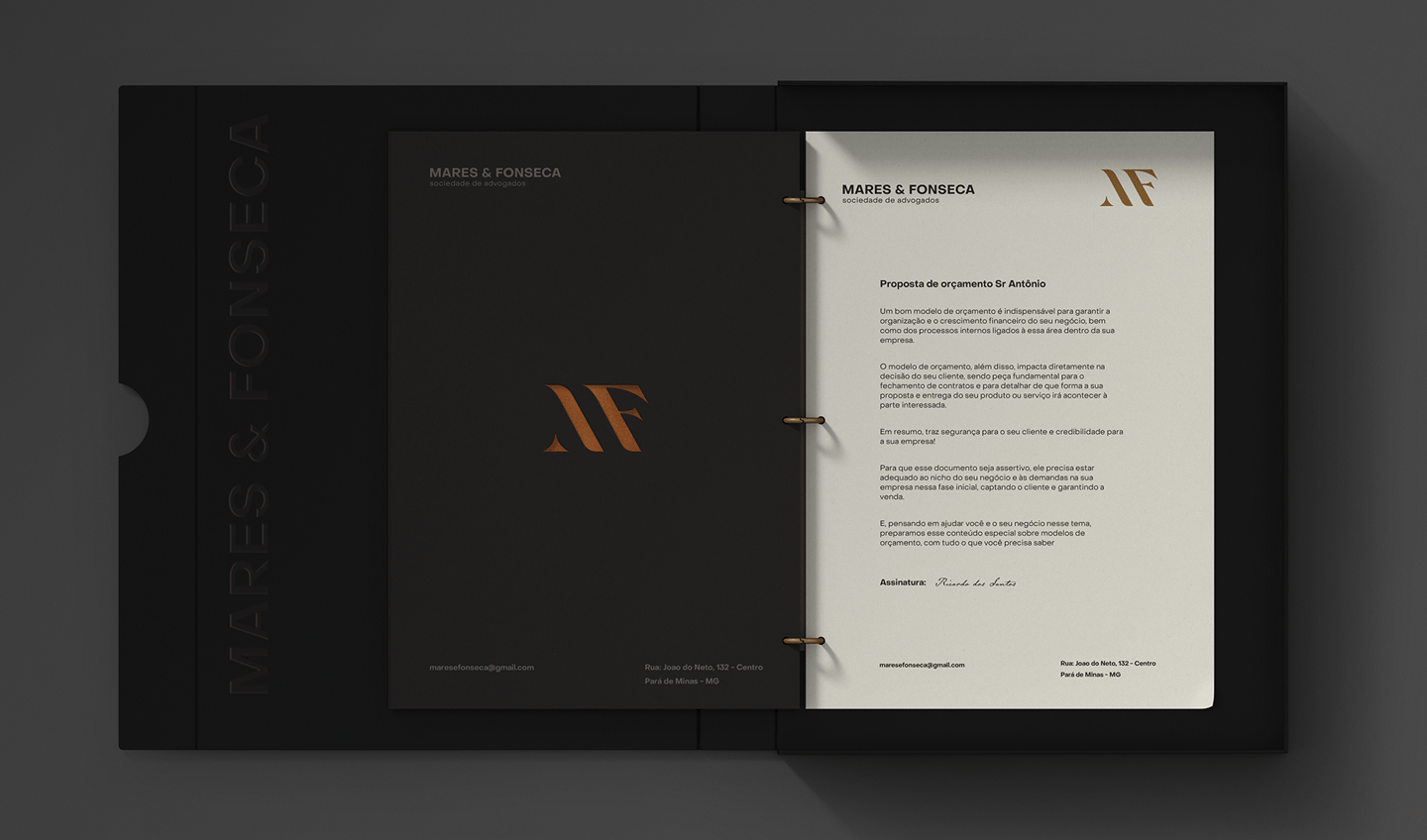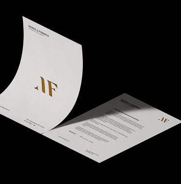 Criamos uma identidade visual baseada nas iniciais MF conforme solicitado para atender a necessidade de um símbolo que reforce o nome do escritório.