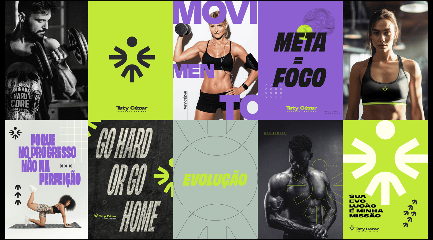 O projeto de identidade visual para Taty Cézar, personal trainer, nasceu com o objetivo de posicioná-la como uma referência jovem, acessível e energética no universo do bem-estar e do condicionamento físico — sem perder a seriedade e o foco nos resultados.