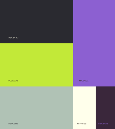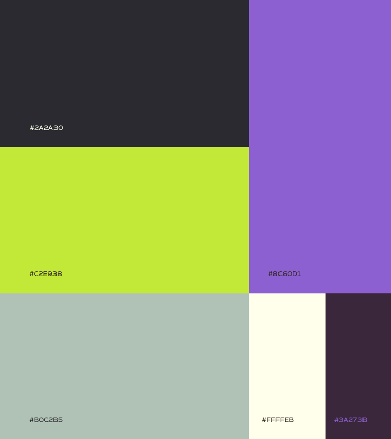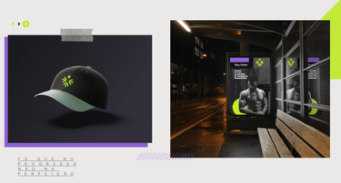 A paleta de cores reforça essa dualidade: tons vibrantes como verde e roxo expressam dinamismo e determinação; o preto e o off-white trazem equilíbrio e profissionalismo; e o azul pastel simboliza foco e calma — ingredientes essenciais para uma evolução consciente.