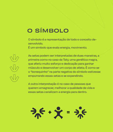 O símbolo, abstrato e dinâmico, traduz toda a filosofia da marca. Inspirado no progresso, ele pode ser interpretado de diferentes formas: como expansão e força para quem deseja ganhar massa e como canalização e foco para quem busca emagrecer. Um design que representa evolução, energia e direção.